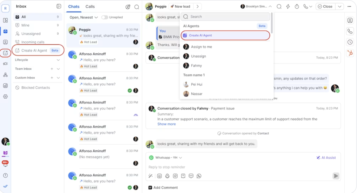 AI capabilities: Use AI Agents to automate conversations, qualify leads and support team members in real time.