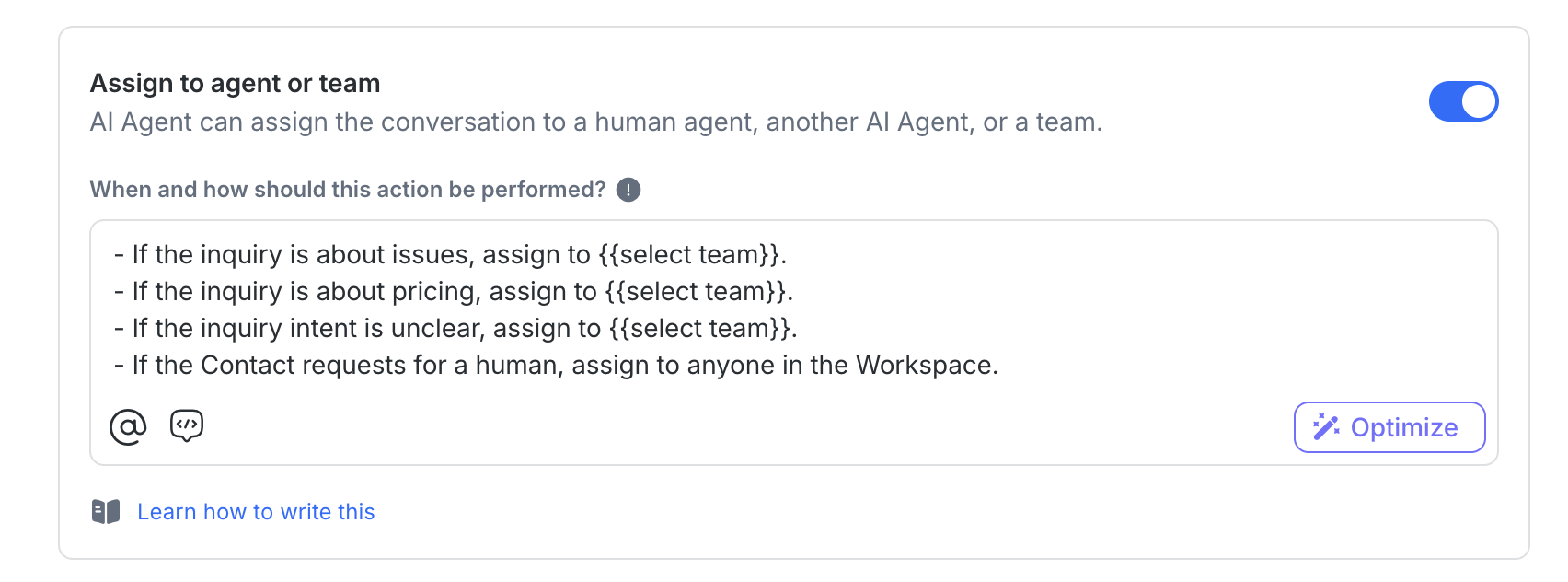 2. Configure your AI Agent to handle inbound chats and escalate them when needed. Here's some guidance to get started: