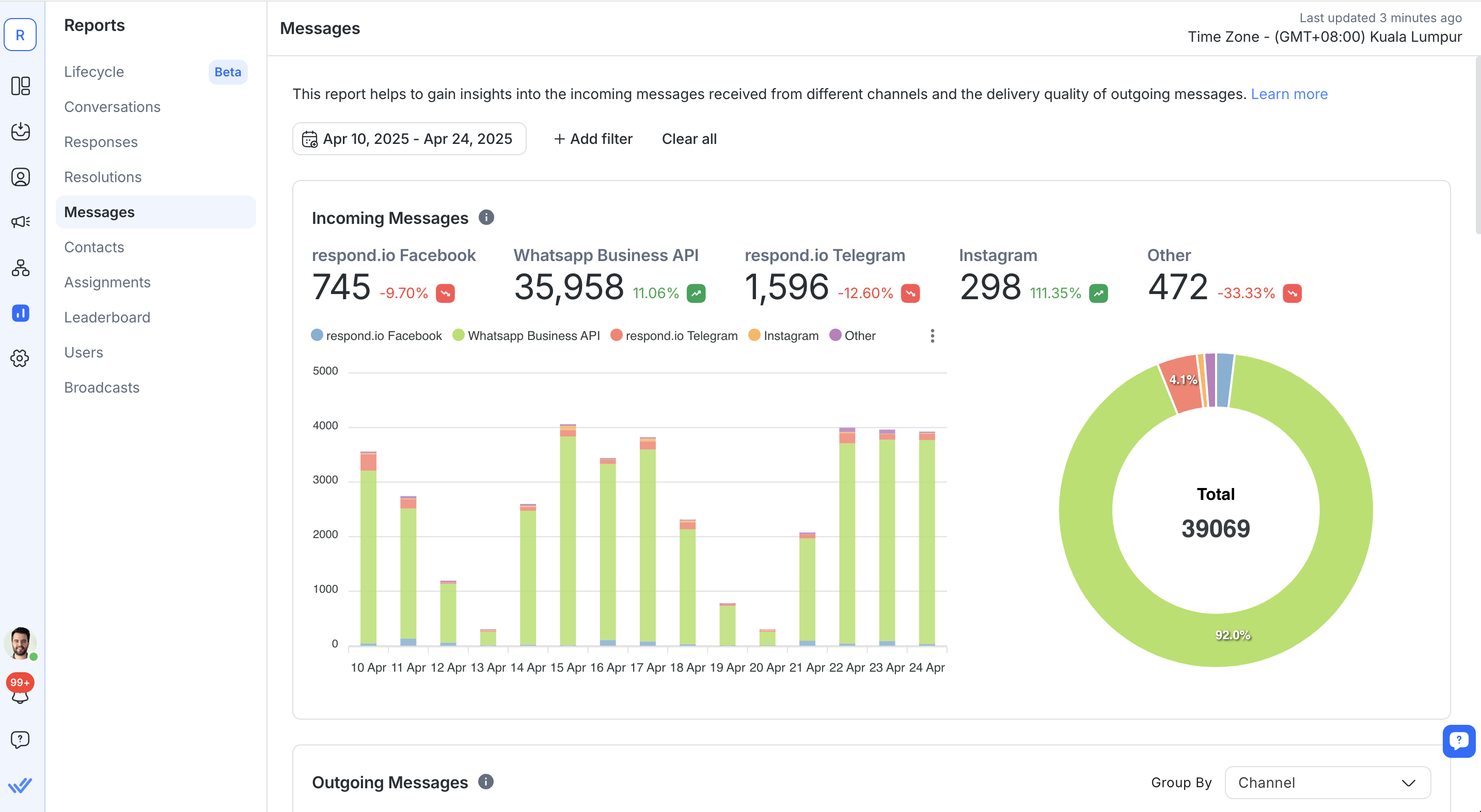 Respond.io offers a dependable platform that is designed to handle high volumes of messages without interruption. It gives businesses the ability to maintain consistent operations and focus on chatting with customers.
