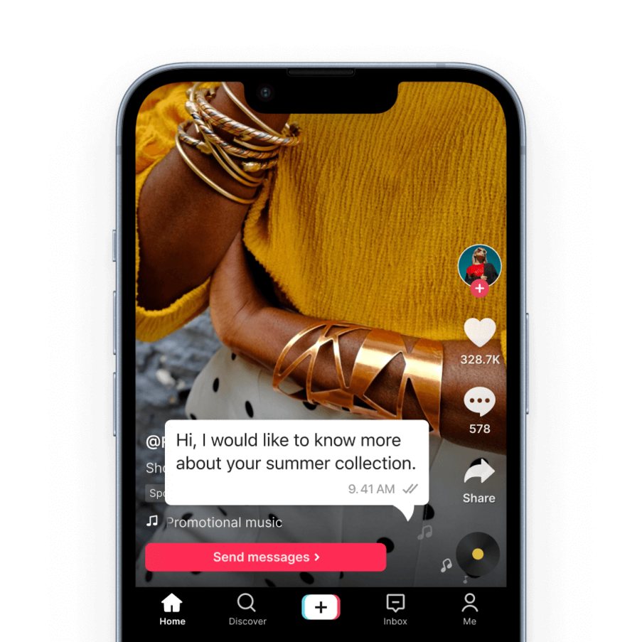 Treffe hochintensive Zielgruppen, wo sie am meisten engagiert sind. TikTok Messaging Ads verwandeln Entdeckung in Aktion, indem sie Echtzeitgespräche anregen, die konvertieren. Reagiere sofort auf Anfragen, teile personalisierte Empfehlungen oder führe Nutzer zu schnellen Käufen - alles innerhalb der App, die sie scrollen lässt.