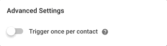 Jede Triggereinstellung hat einen Schalter für Erweiterte Einstellungen, der Trigger einmal pro Kontakt angibt (außer Manual Trigger). Dies schränkt Kontakte ein, diesen Workflow zu wiederholen, so dass sie nur eine einzige Zeit durch den Workflow gehen können.