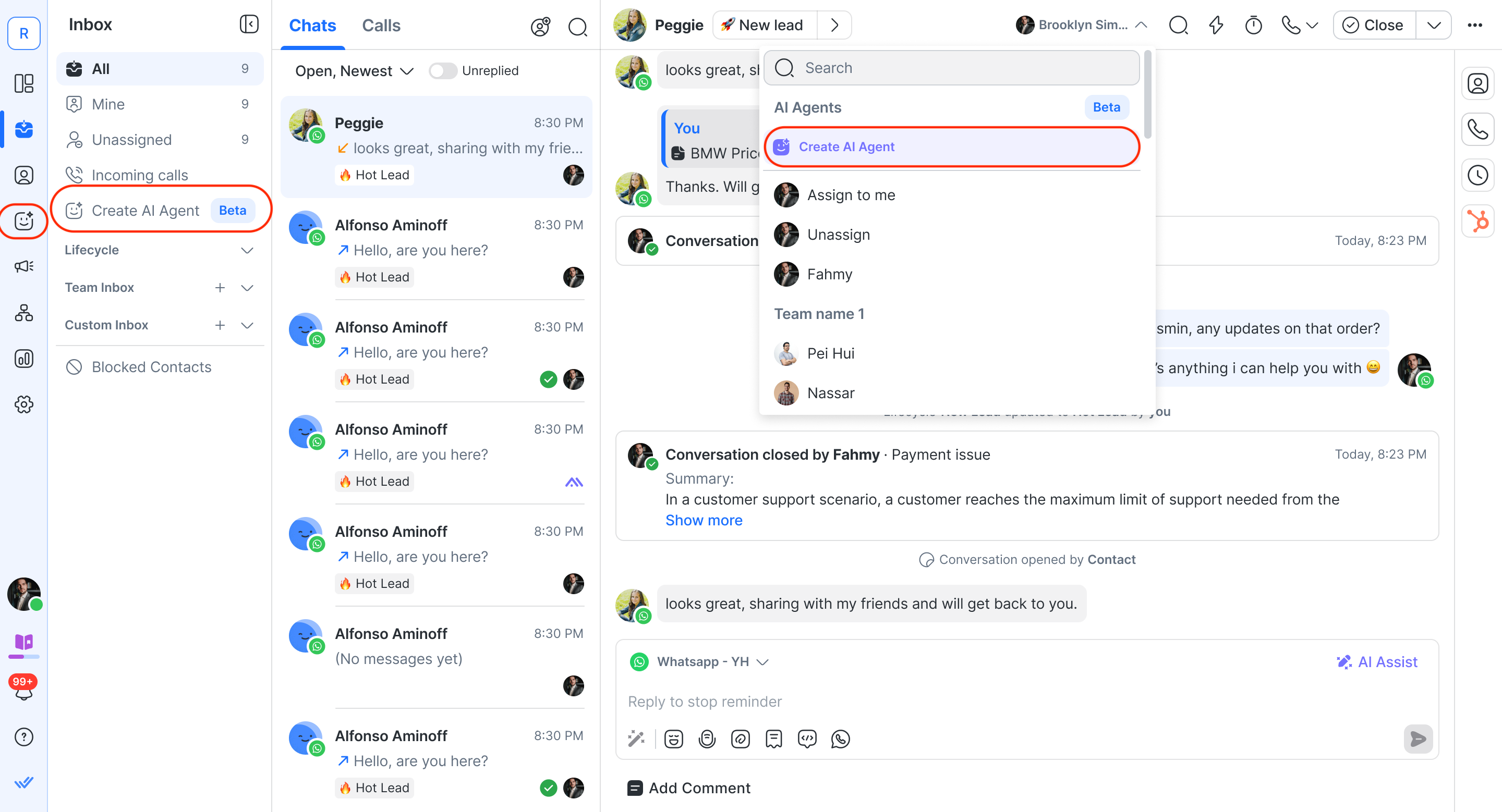 Assign the conversation to your AI Agent from the Assignee dropdown.