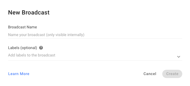 Step 3: Enter your Broadcast Name and Labels > Click Create.
