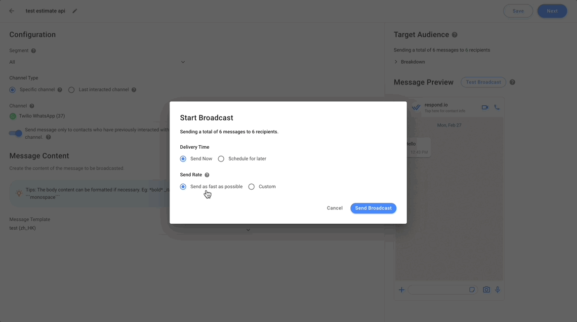Schedule Broadcast and Customize Send Rates