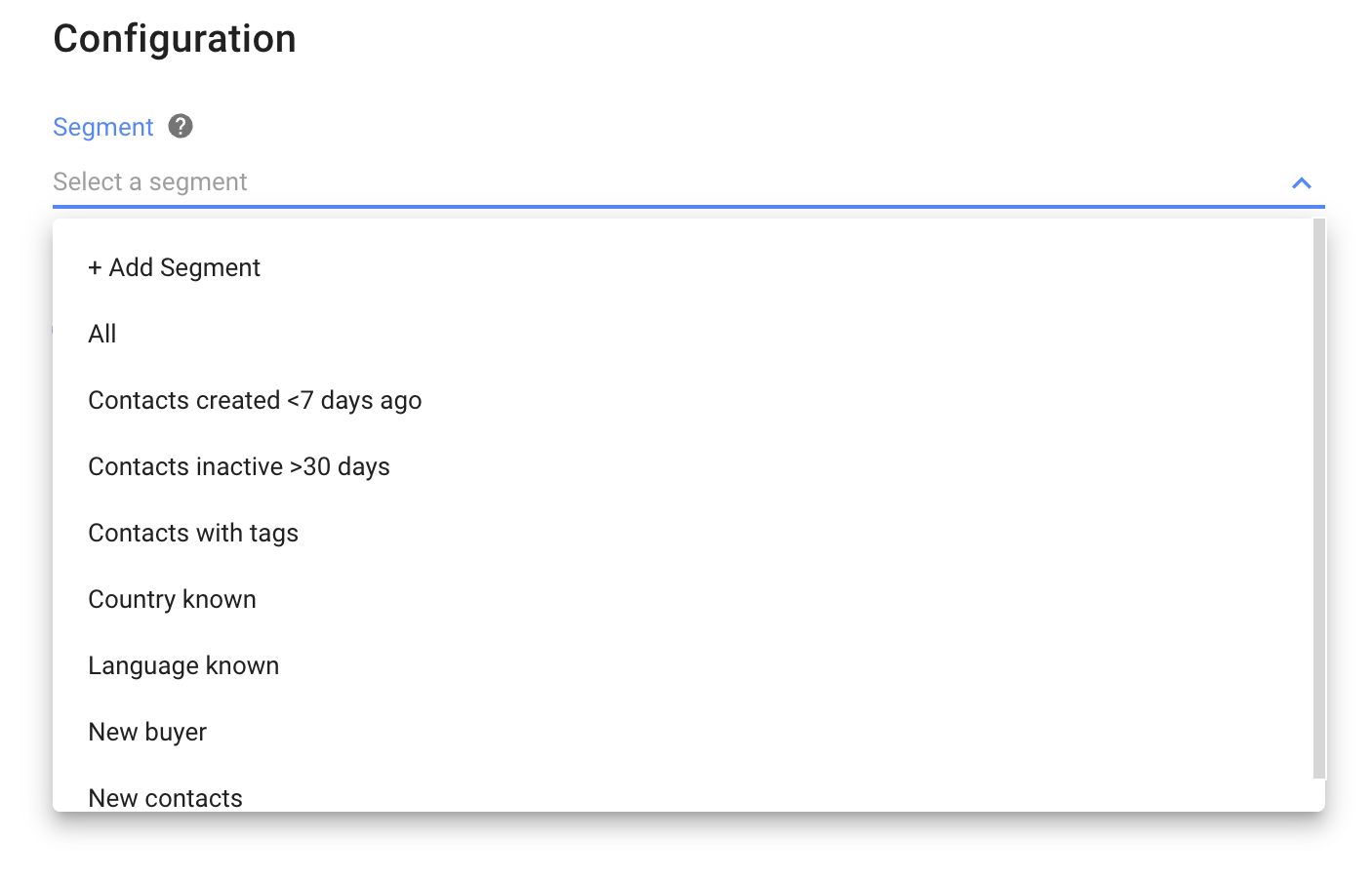 Step 4: Select a Segment to target specific group(s) for your broadcasts by clicking the drop-down menu: