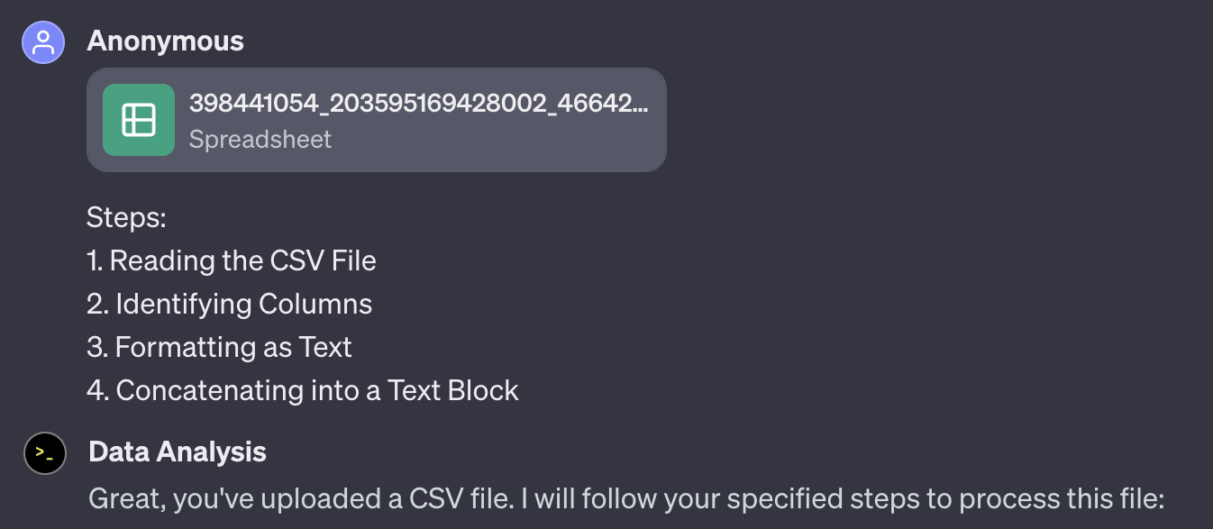After the data is processed, you can guide ChatGPT to format the text for display. For example, you can ask it to format text as:
