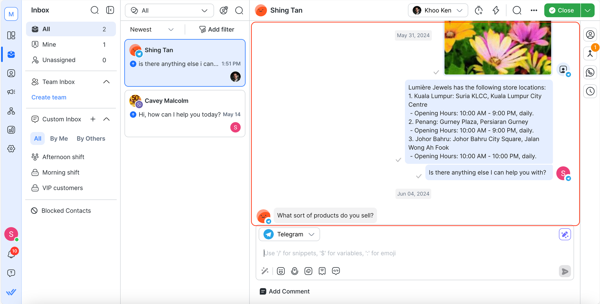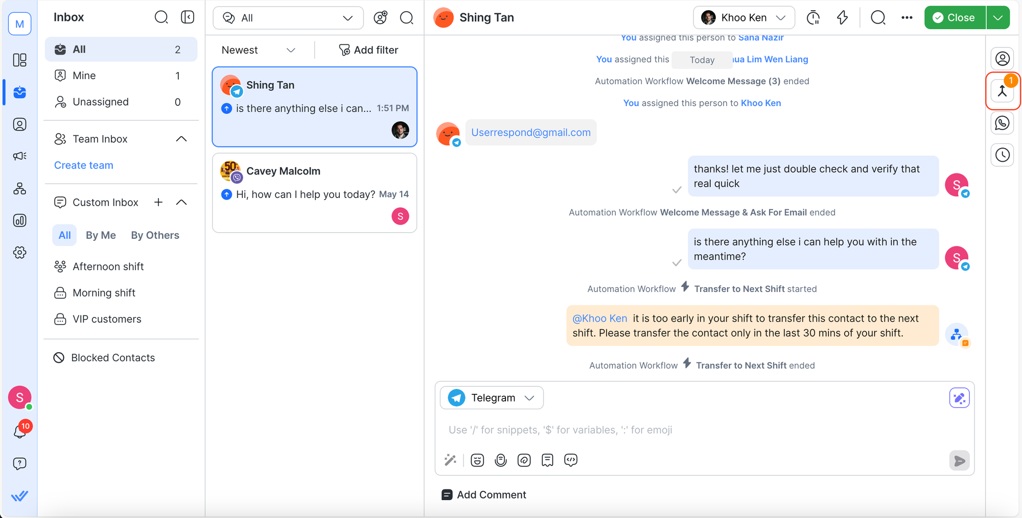 To reduce the time needed for agents to go through the entire conversation, Owners or Managers can consider making closing notes and summary mandatory every time a conversation is closed. When the conversation is re-opened, the agent who is assigned to the Contact can quickly read through the conversation summary to understand the context of the previous conversation without going through the entire conversation history. Learn more about closing notes here.