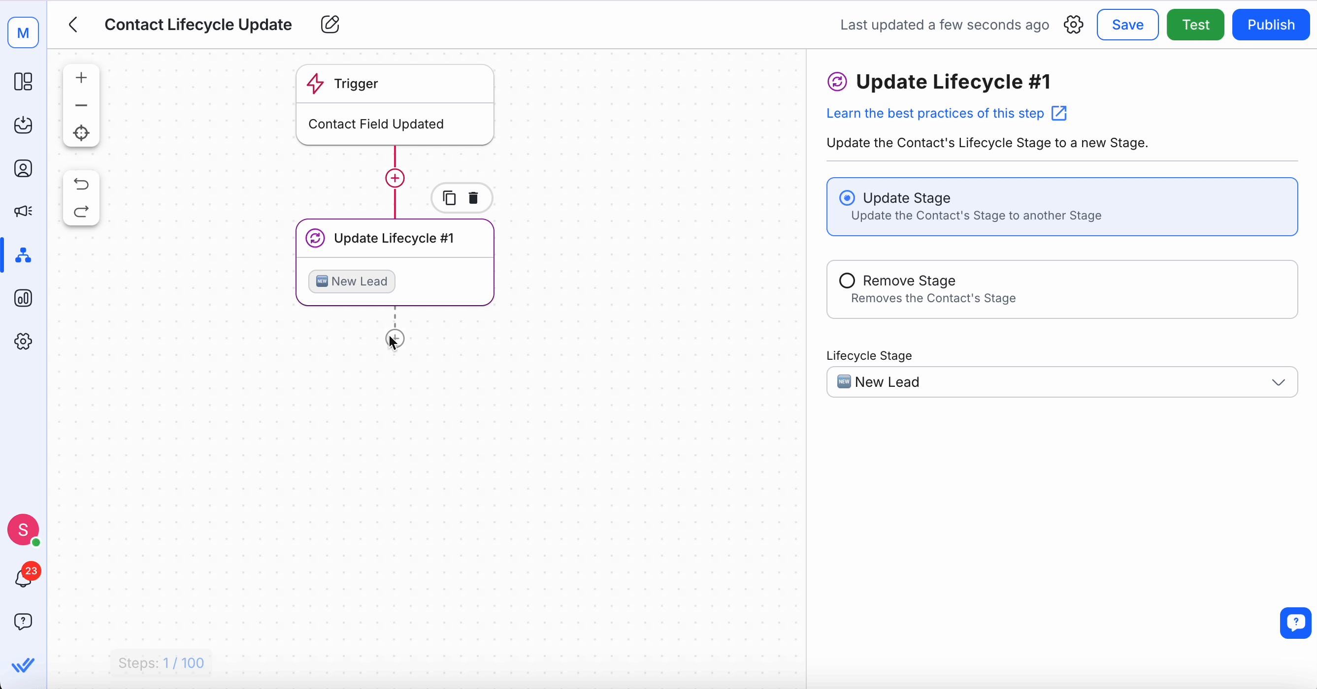 Click on + Add Step and select Update Lifecycle.