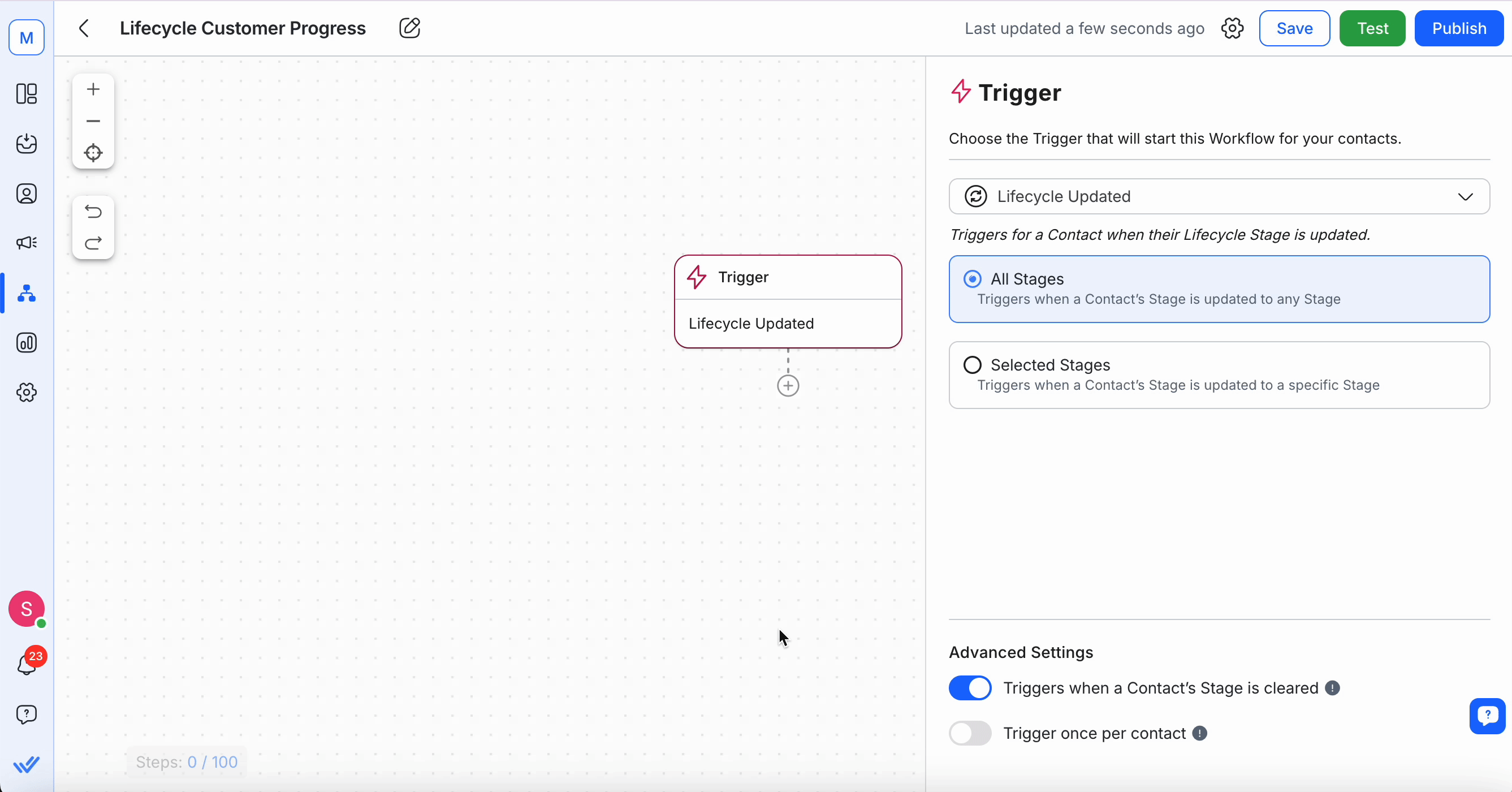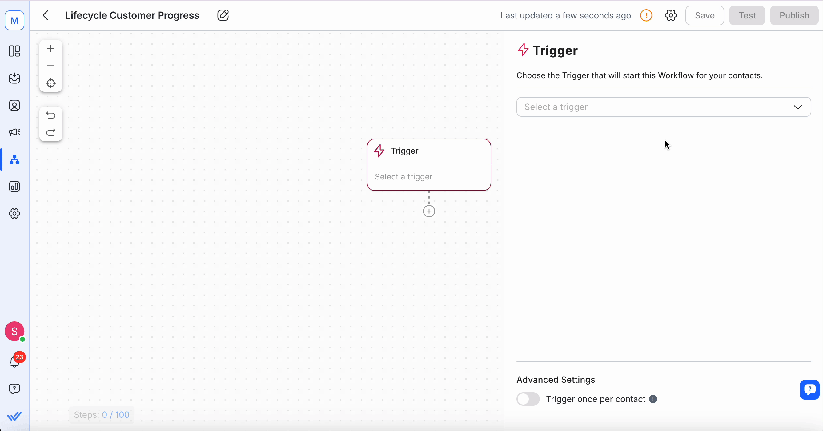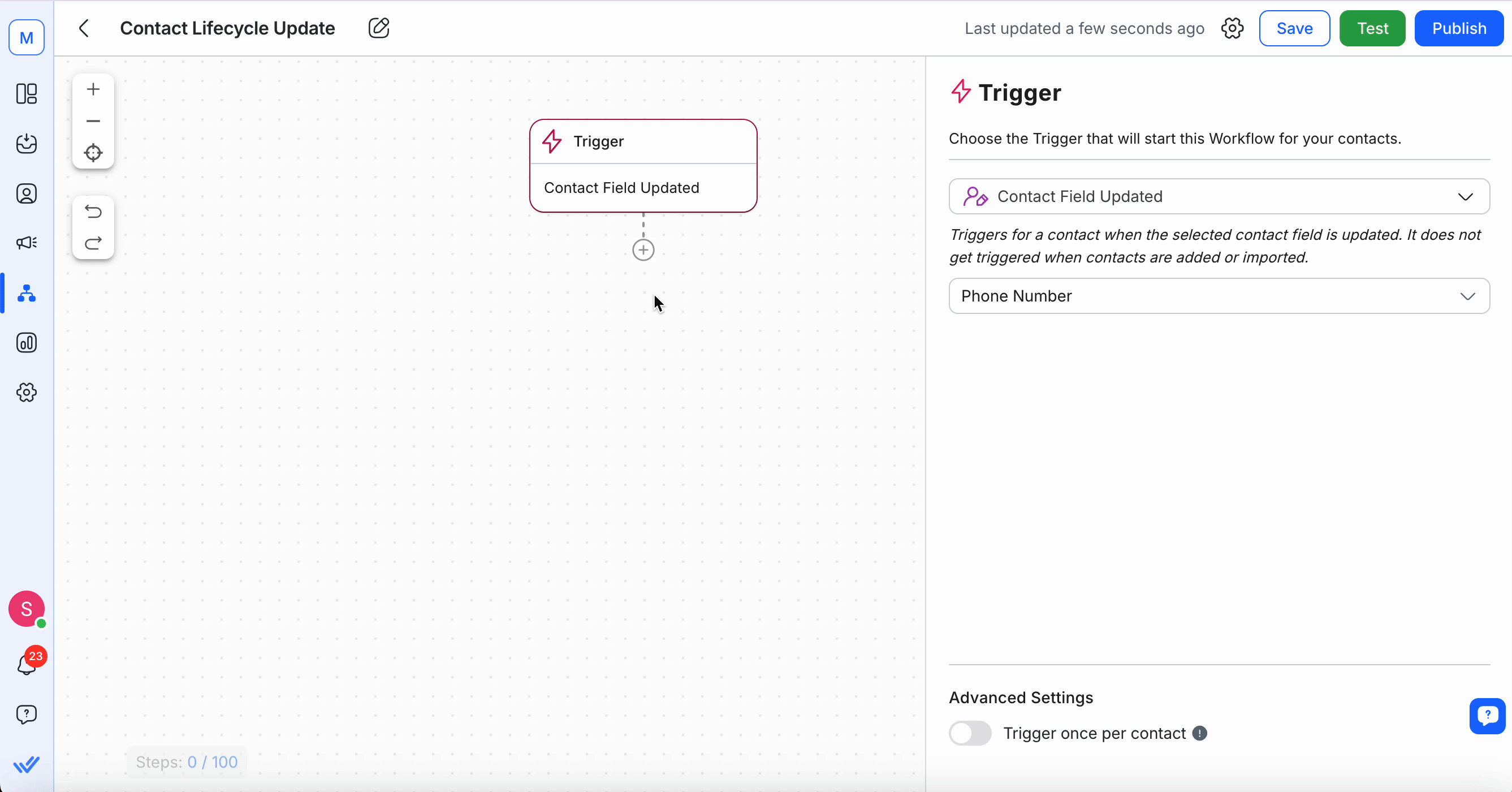 Select a trigger that suits your needs, such as Contact Field Updated.