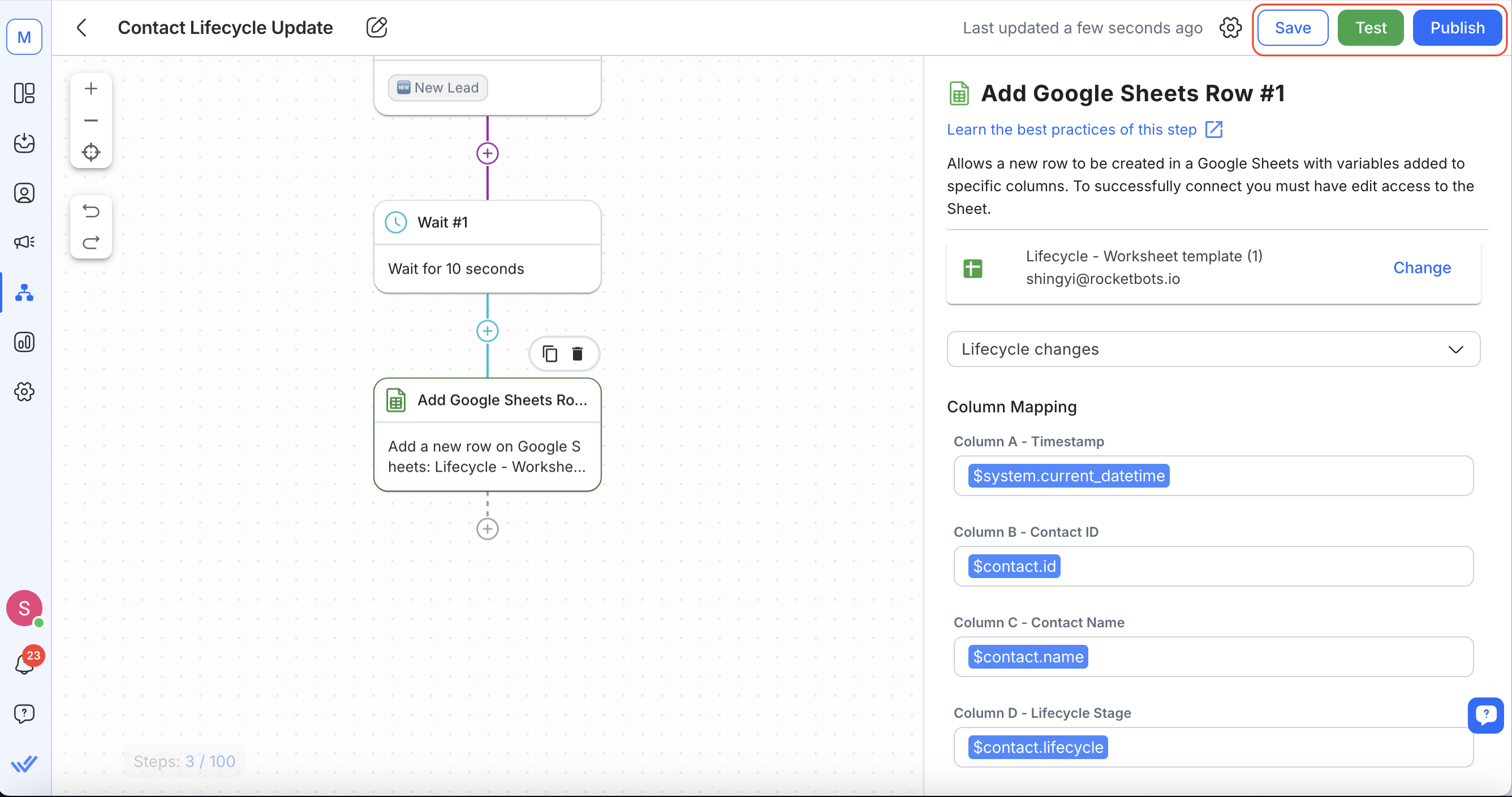 Automating the tracking of Contacts and logging data into Google Sheets empowers your team with valuable insights to optimize the sales process. By leveraging our Lifecycle feature and workflows, you eliminate manual data entry, allowing your team to focus on engaging with Contacts and closing deals.