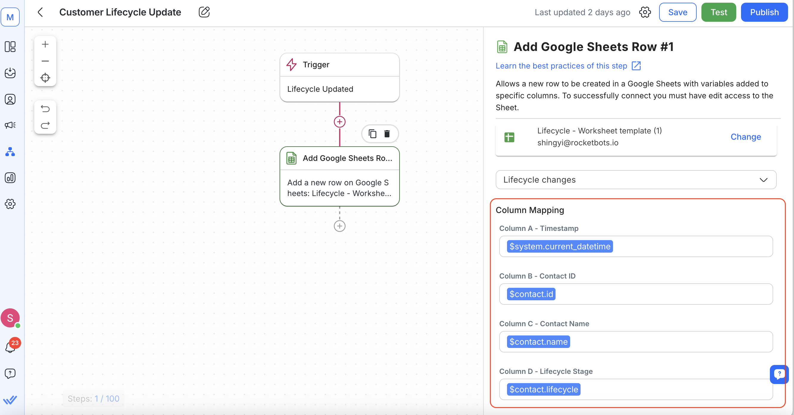 Map the Contact’s information to the corresponding columns in your Google Sheet: