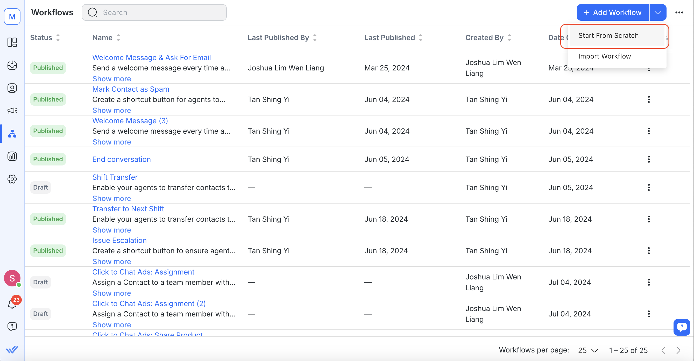 On your dashboard, go to Workflows > + Add Workflow.