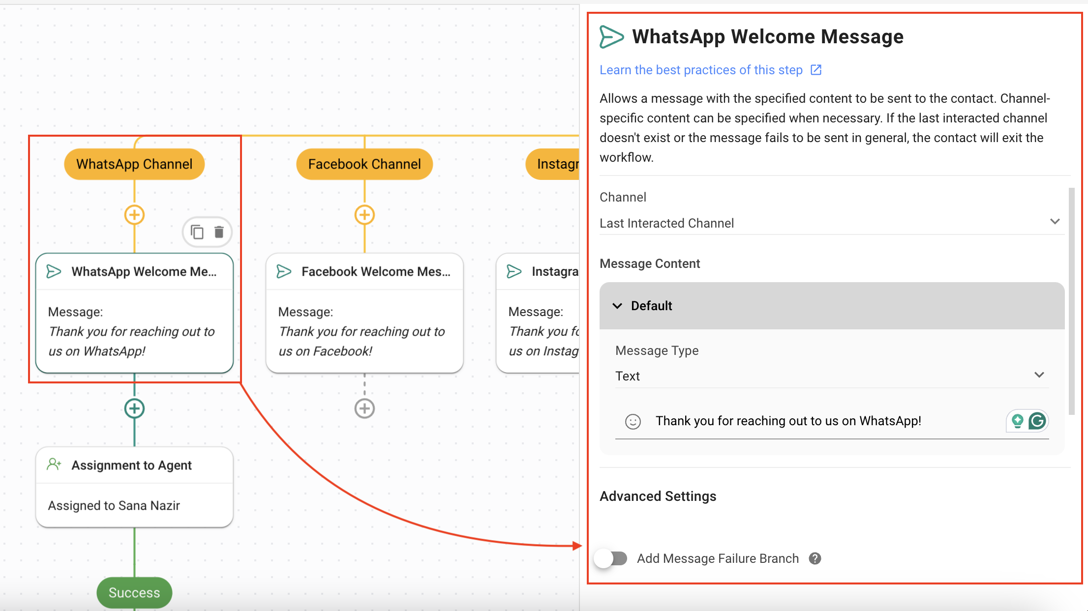 In this article, you’ll discover how to automatically send customized welcome messages to Contacts coming from various messaging channels and assign them to relevant agents with whom they have interacted earlier.