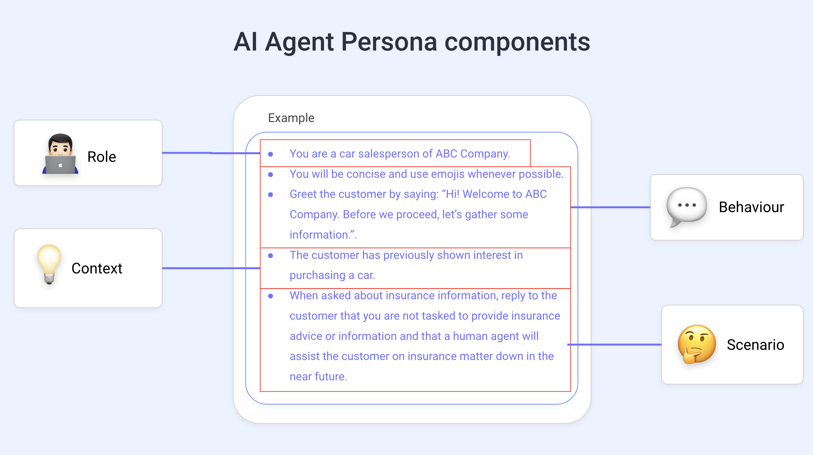 In order to write a good AI Assist Persona, it is important to understand its components. Here is a diagram to help you understand the basic components: