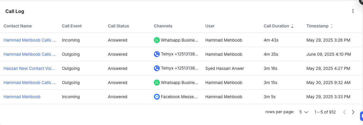 Call Duration: Time spent on the call. Not shown for unanswered calls.