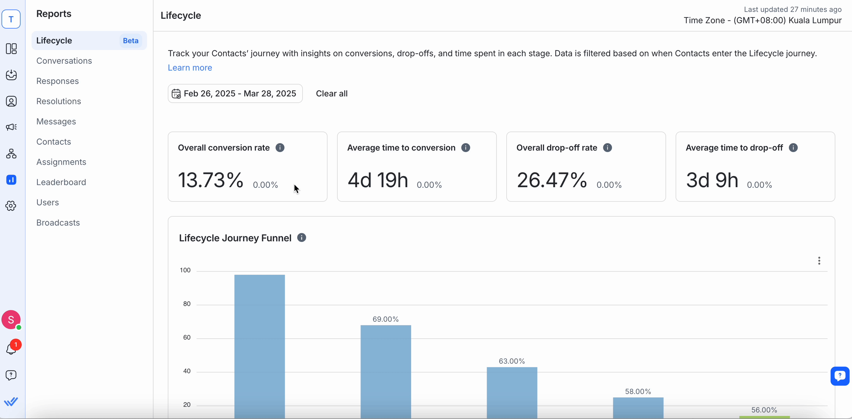 Your Lifecycle Reports dashboard displays key metrics that reveal how effectively contacts move through the funnel. Hereâs a breakdown of each metric and why it matters:
