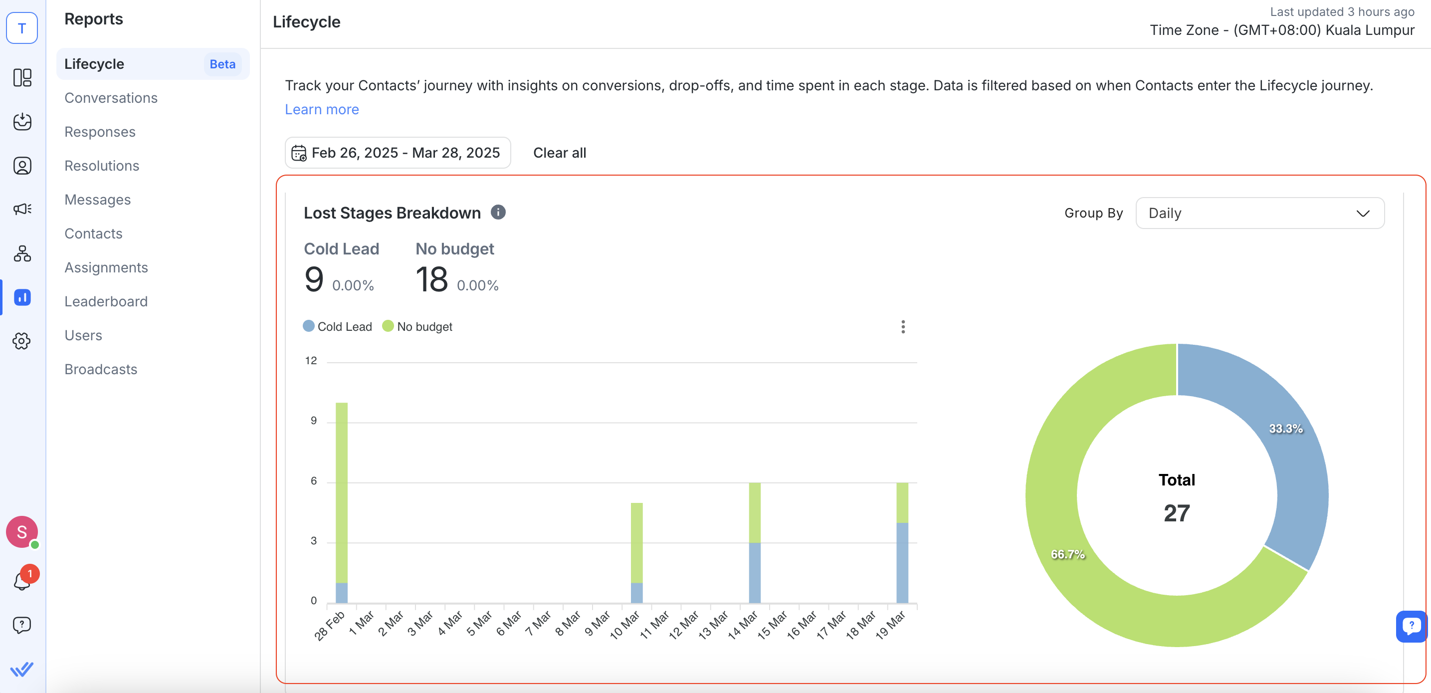 If youâre running Meta Click-to-Chat Ads or TikTok Messaging Ads, you can now combine ad source attribution with Lifecycle stages to get deeper insights into lead quality and funnel performance.