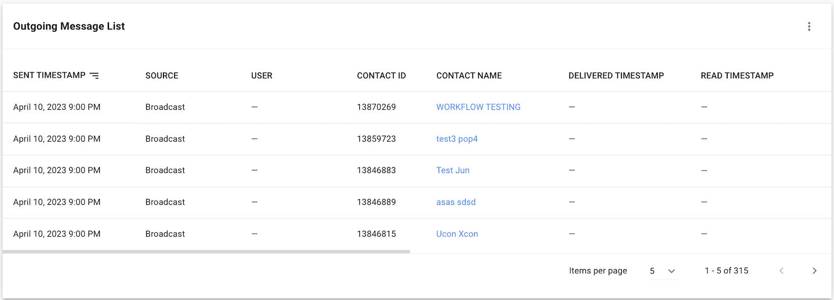 Delivered Timestamp | The date and time the message was read. Any change to the delivery status after 30 days will no longer be reflected here. |