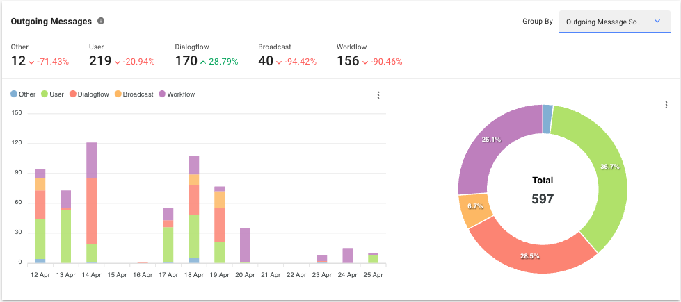 The chart can be grouped by Channel, Outgoing Message Source, Outgoing Message Type and Outgoing Message Sub-type.