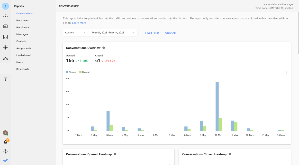 All data in the Reports module is shown based on your Workspace Timezone settings. Be sure to configure your preferred timezone to ensure report accuracy.
