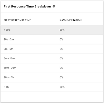This table shows the breakdown of the conversations that are closed within the selected period by the first response time of the conversations.