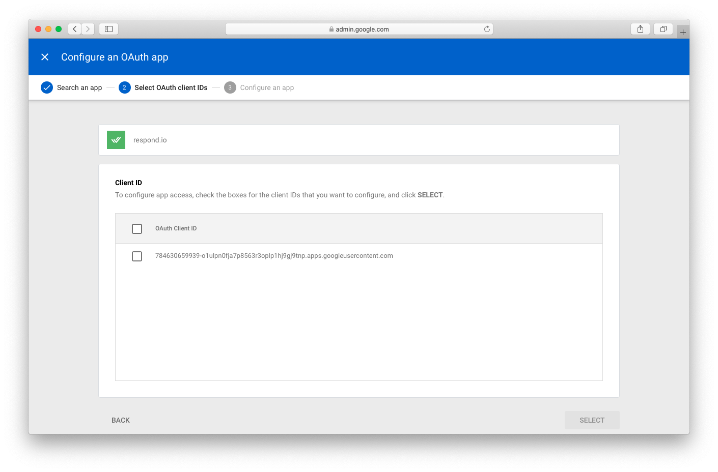 Select the OAuth Client ID from the list that matches the provided ID above.