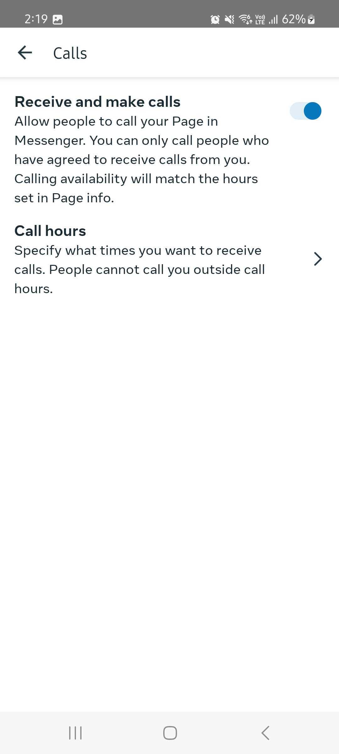 Enable Messenger calling feature for your Facebook page.