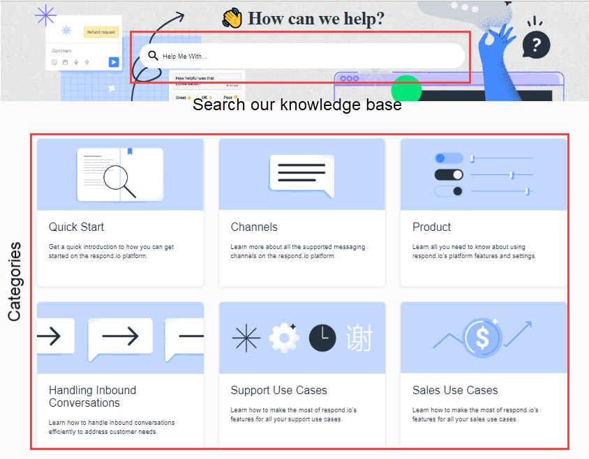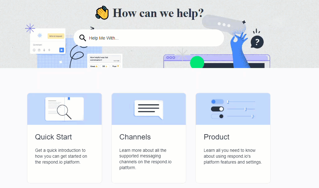 On the main page of the Help Center, you can:
