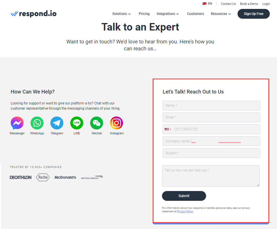 The Talk to an Expert page can also be accessed from the Resource Center.