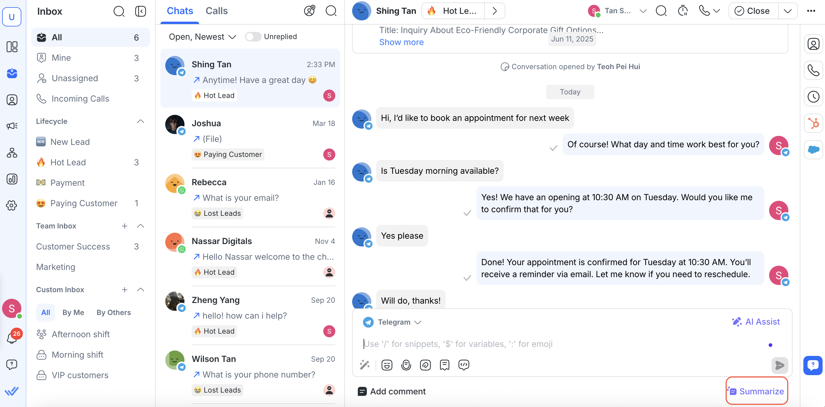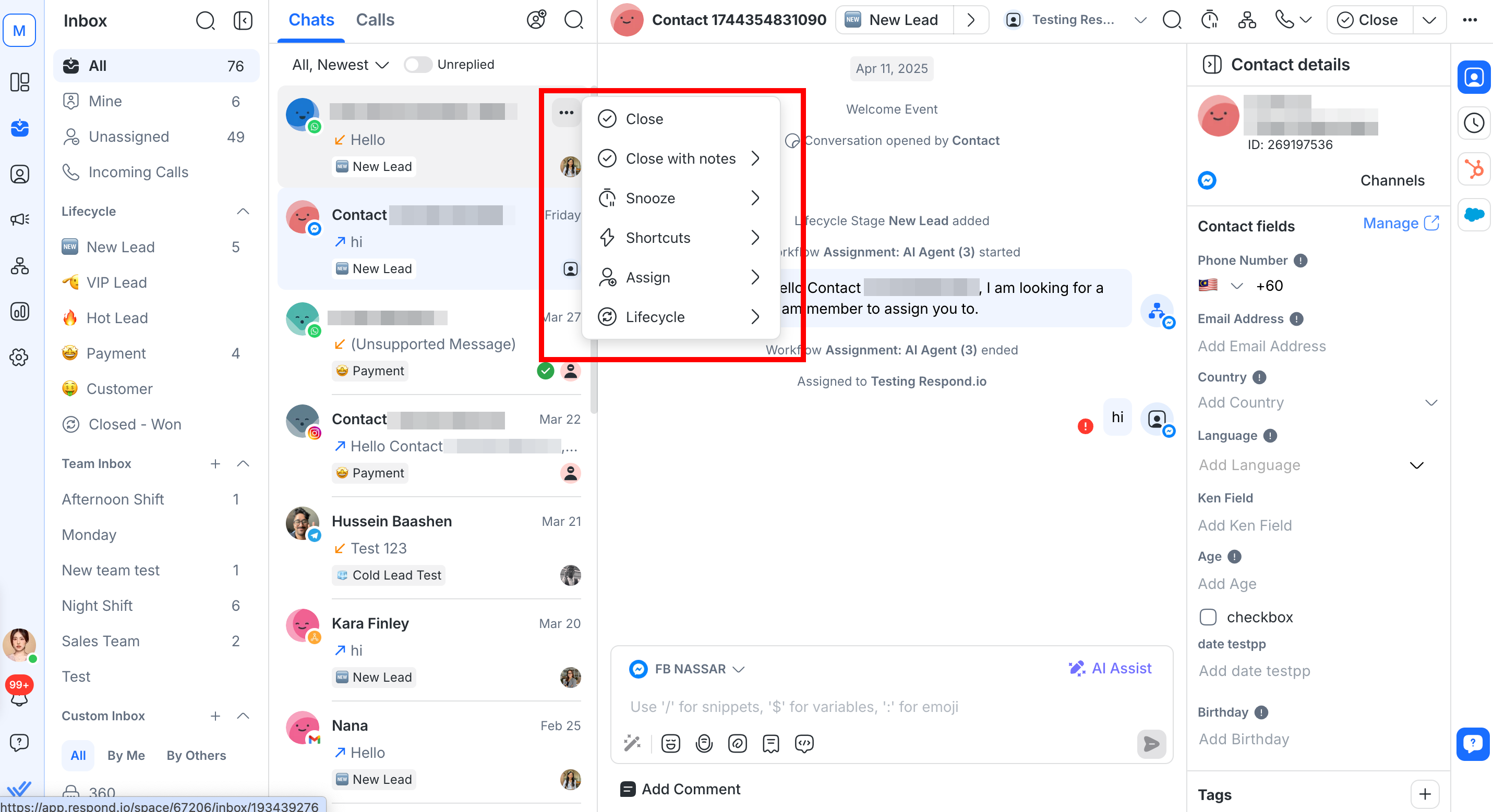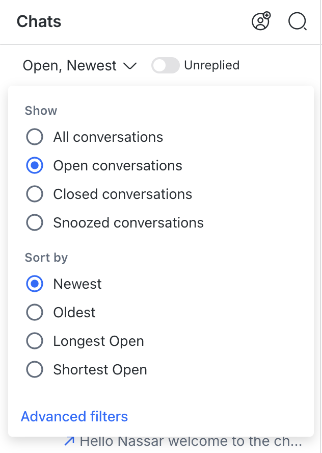 Unassigned: Shows conversations that havenât been assigned.