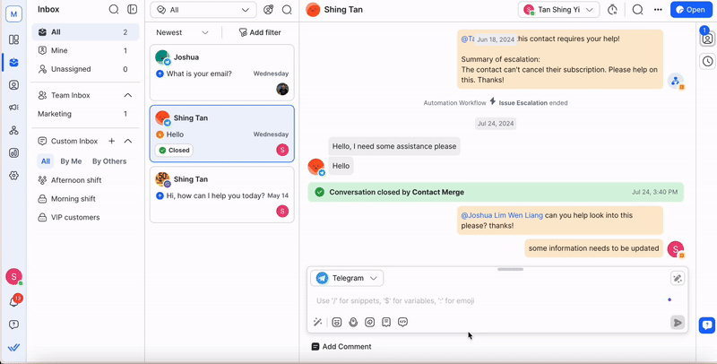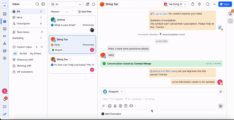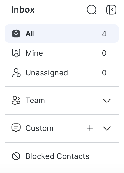 Access to this inbox is granted to Agents, Owners and Managers. This inbox will be displayed only if you have access to view conversations of blocked Contacts and there is at least 1 blocked Contact in the Workspace.