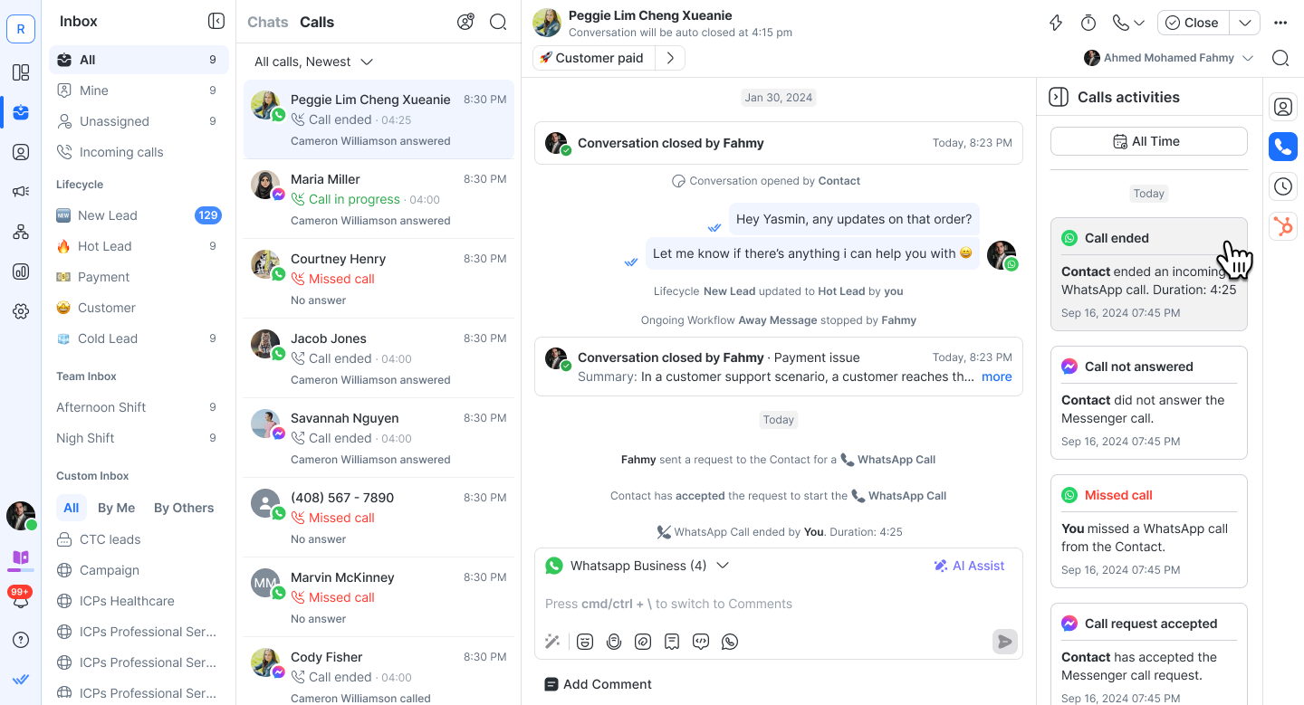 You can now access all call-related activities for a Contact in a dedicated Calls activities tab within the Contact drawer. This helps you easily view missed calls, ongoing calls, declined requests, and more, all in one place.