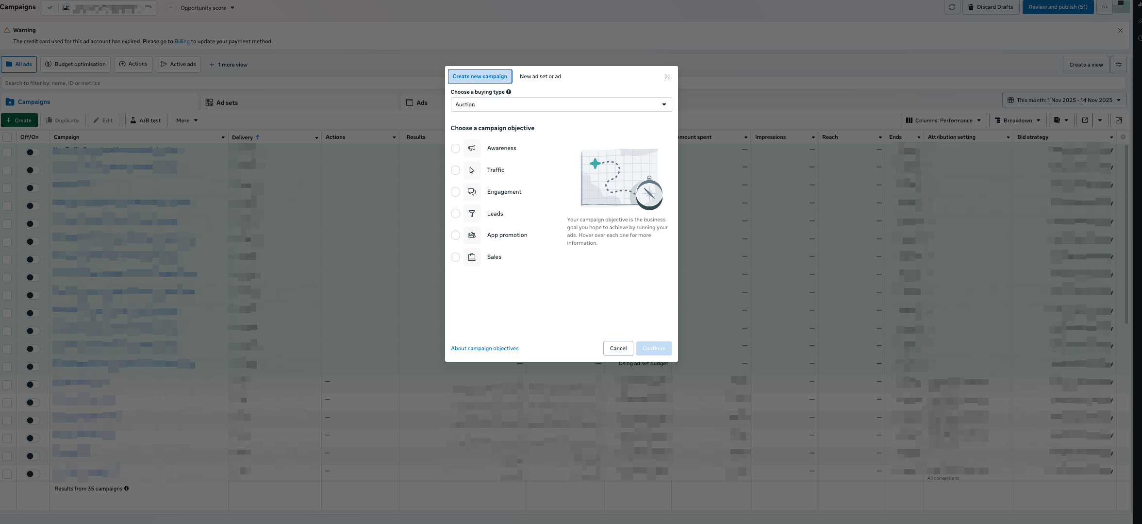 Select a CTC-supported objective: Traffic, Engagement, Leads, or Sales.