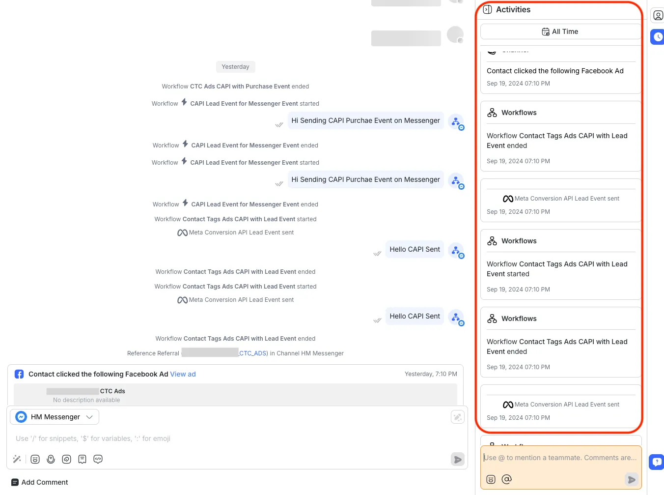 In addition, the Activity section within a Contactβs details will log the click-to-chat ad event, providing your team with a full history of customer interactions tied to Meta ads.