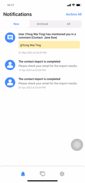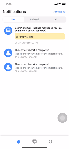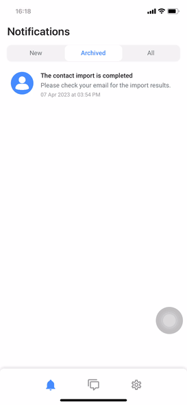 To archive a new notification: In the New tab, swipe the notification to the right > tap Archive.