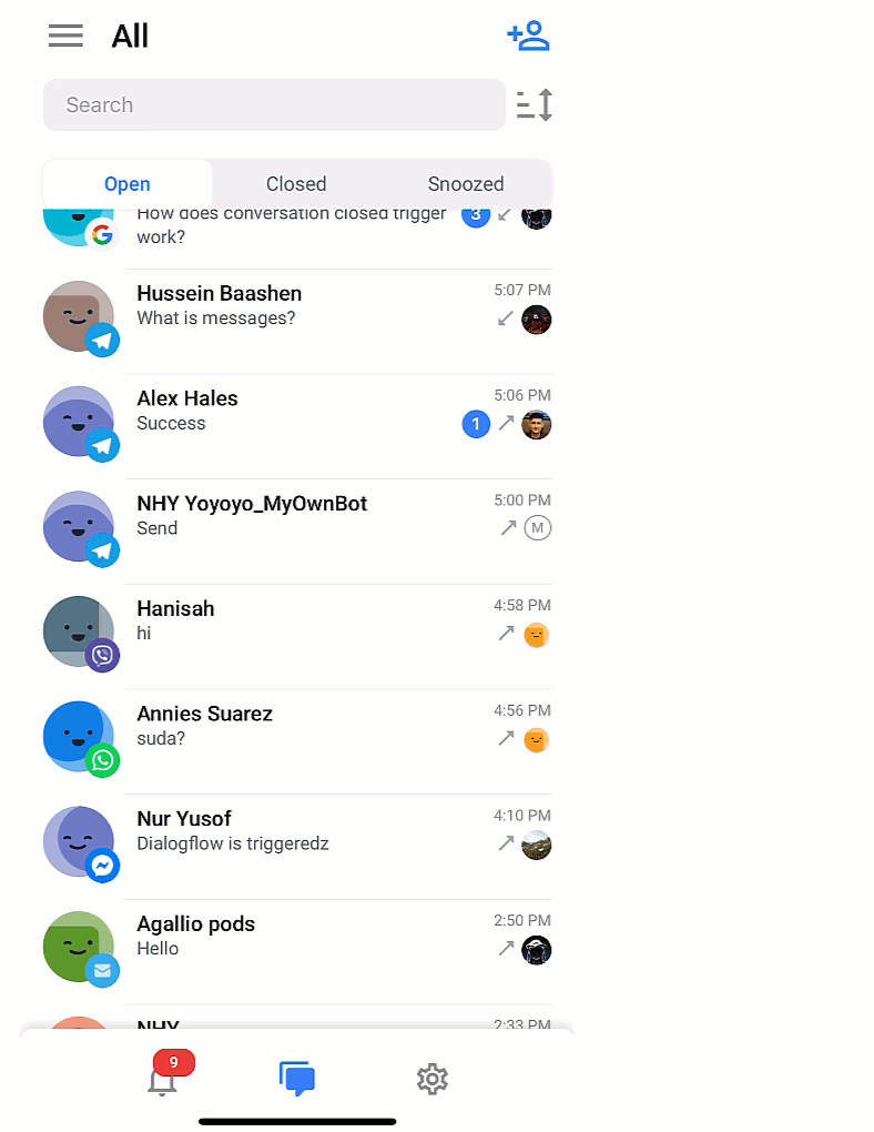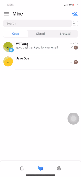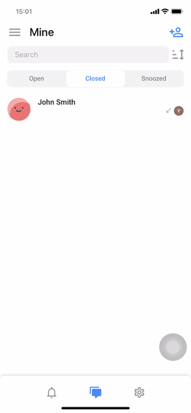 Push Notification: When the Snooze ends, a push notification is sent to the assigned agent(s) according to the workspace notification settings.