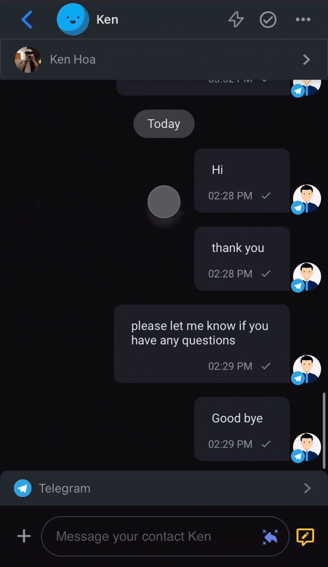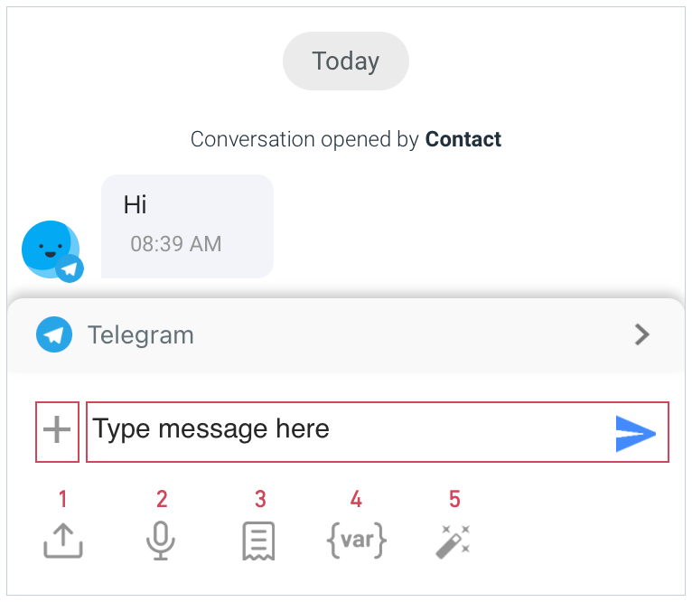 Tap the messaging console at the bottom screen to compose and send messages to your Contact. You can also tap the + icon next to it to display more options: