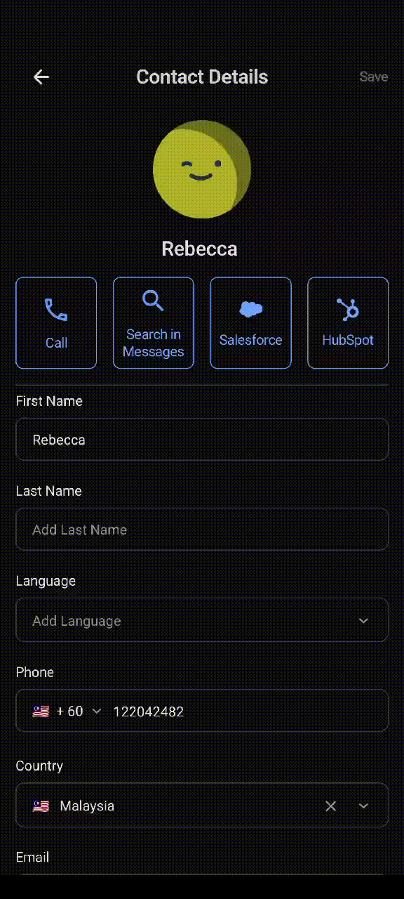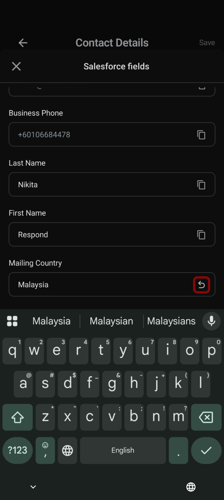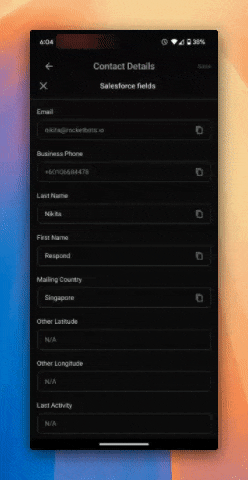 You can also tap to copy Salesforce fields and quickly paste them into another conversation or Contact detail, making it easier to share key information without switching between platforms.