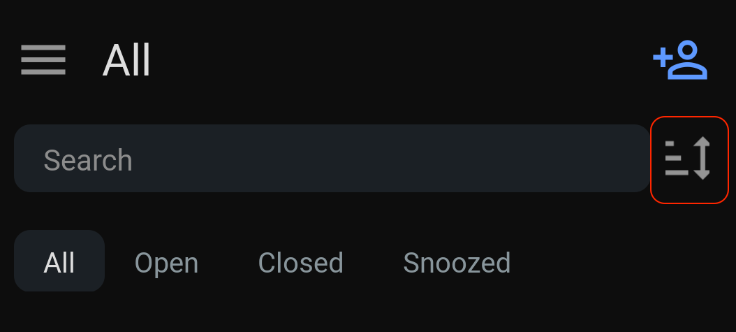 Shortest Open / Closed / Snoozed - Depending on the tab filter, sort Contacts by the shortest length of time the conversation has been opened, closed or snoozed (from shortest to longest duration).