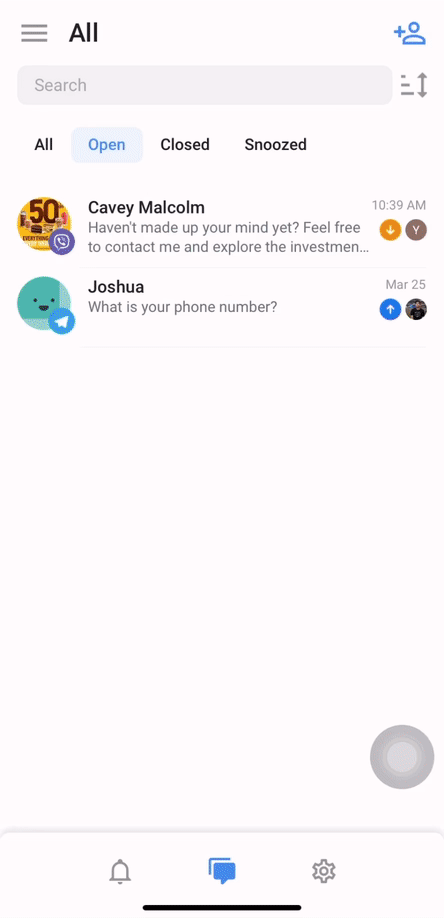 When you snooze a Contact, the Contact will be removed from your Contact list and placed in the Snoozed tab until the specified time. Once the snoozed time is up, the Contact will reappear in your Contact list.