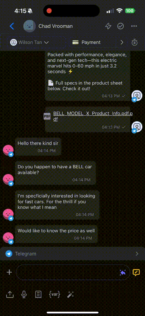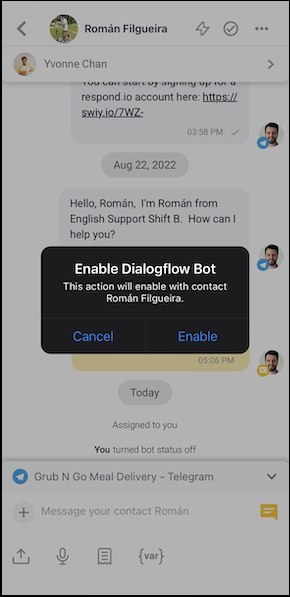 To disable it, repeat the step and tap Disable Dialogflow Bot.