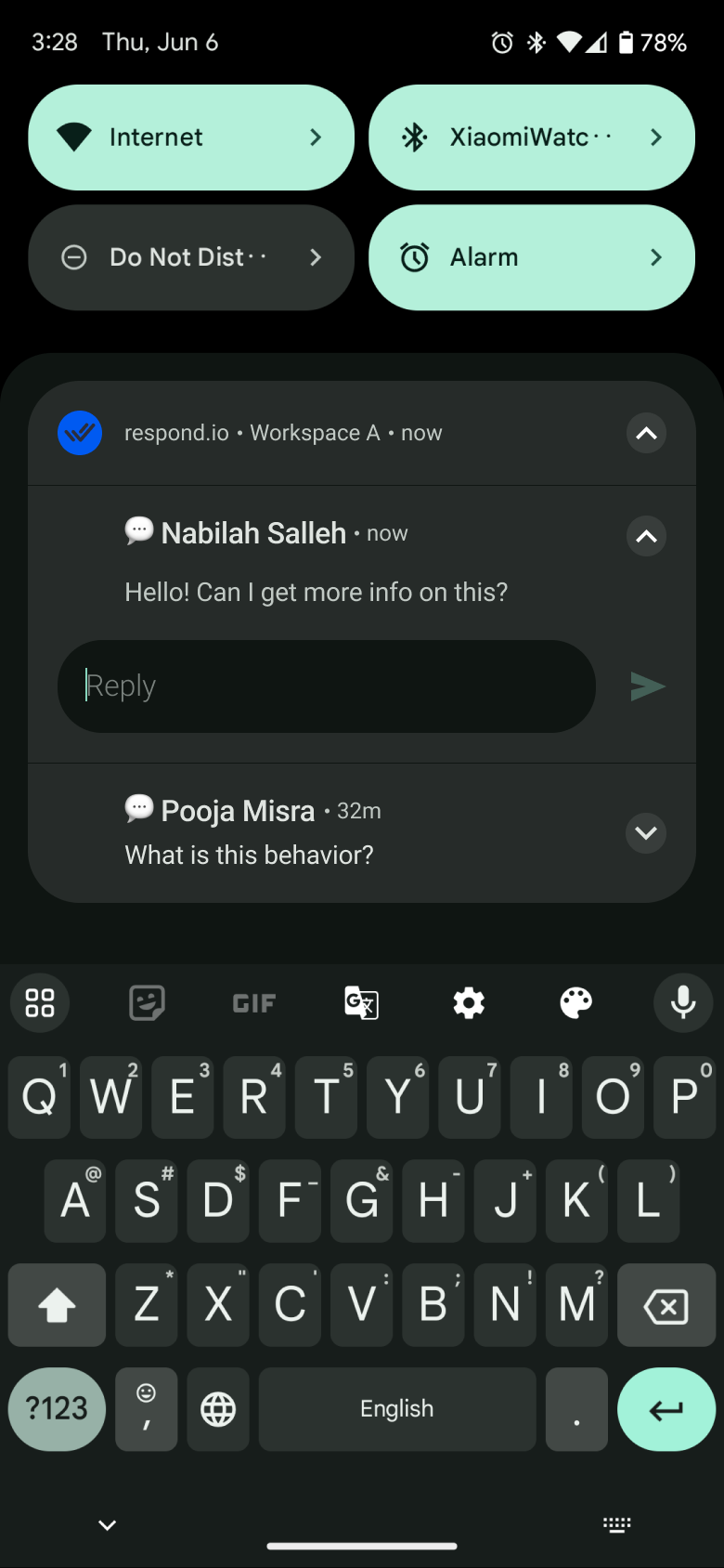 Reply to messages directly from the notification drawer without opening the app. Simply tap “Reply” on a message notification to send your response instantly.