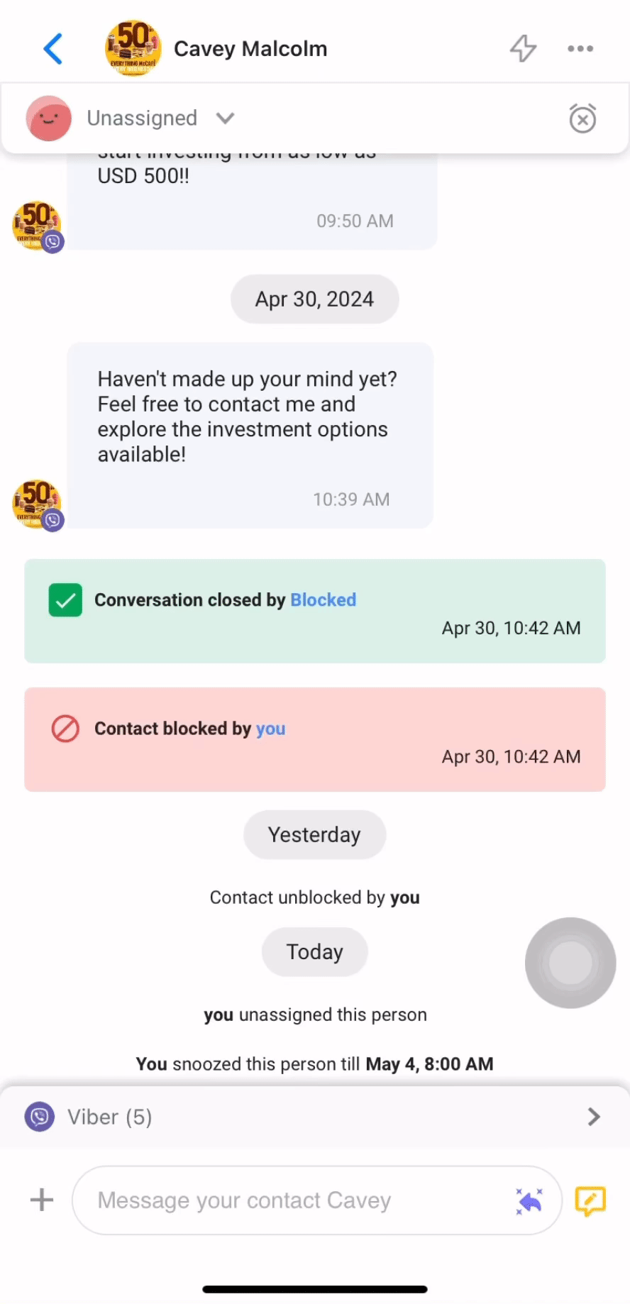 Blocked Contactsinbox: Shows conversations of Contacts that have been blocked.