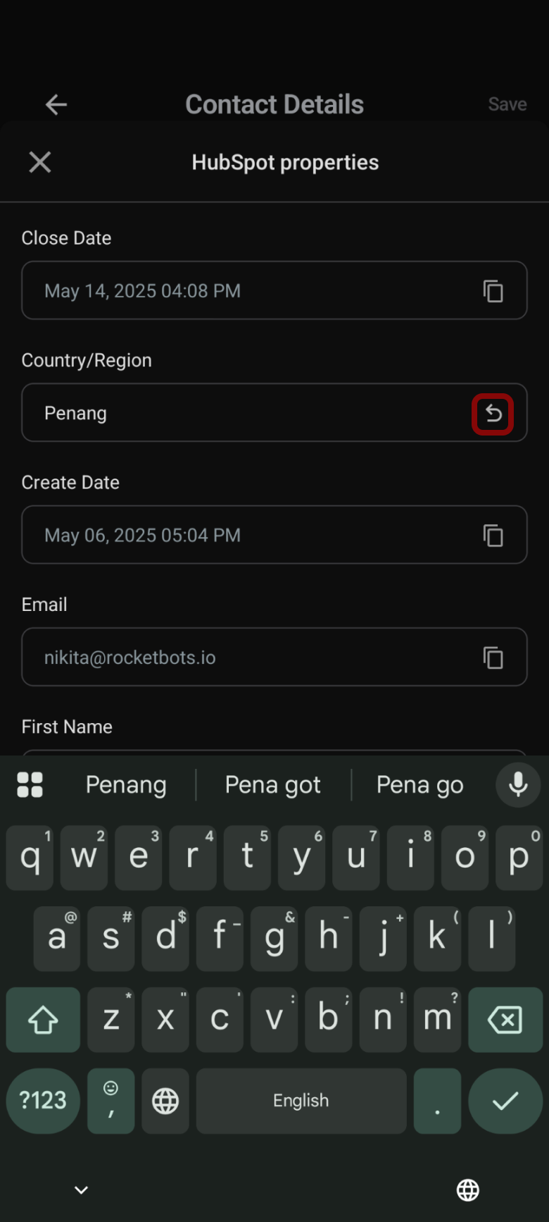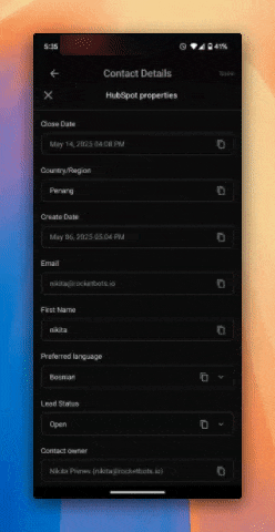 You can also tap to copy HubSpot properties and quickly paste them into another conversation or Contact detail, making it easier to share key information without switching between platforms.