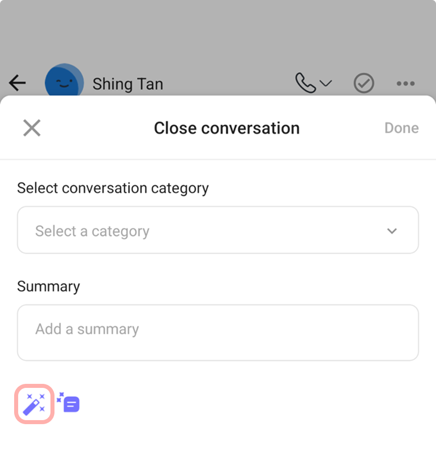 You can now generate AI-powered summaries of the current conversation directly from the Comment composer. This helps summarize lengthy threads before handoff or documentation.