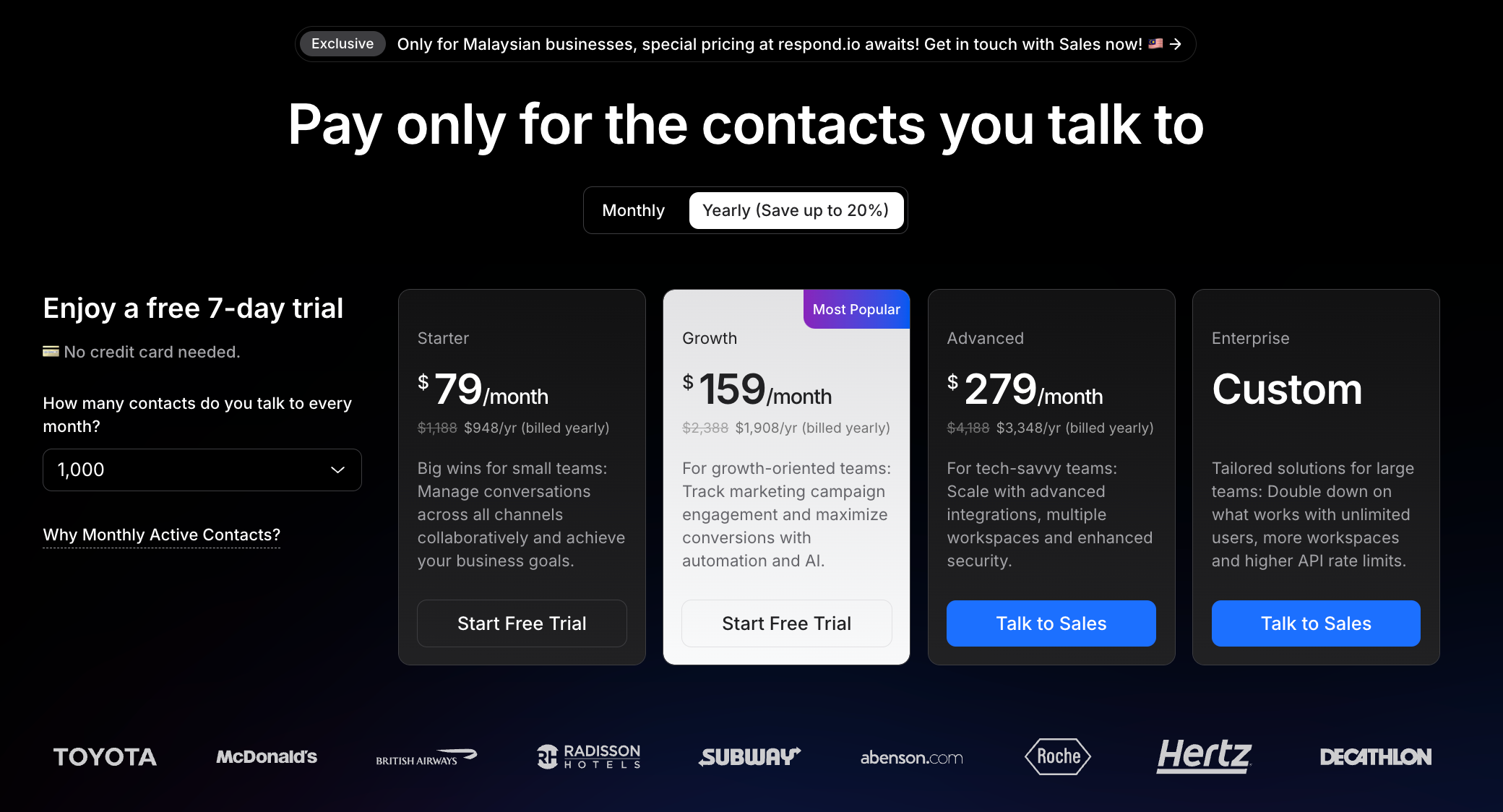 We are sorry you didn’t enjoy your respond.io experience. Before canceling your subscription, please reach out to us and let us know how we can improve.