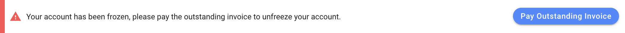 FROZEN | Your organization is frozen due to overdue payment, you are required to pay the invoice now to unfreeze your organization. |