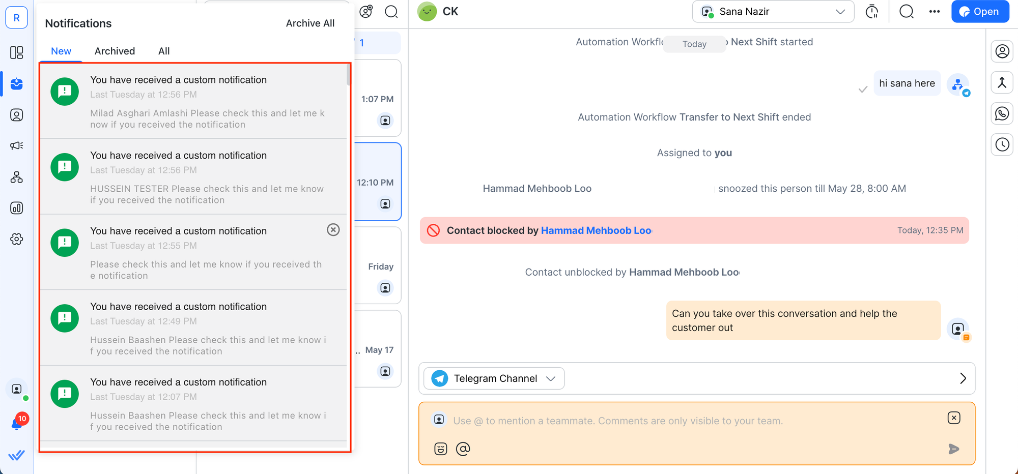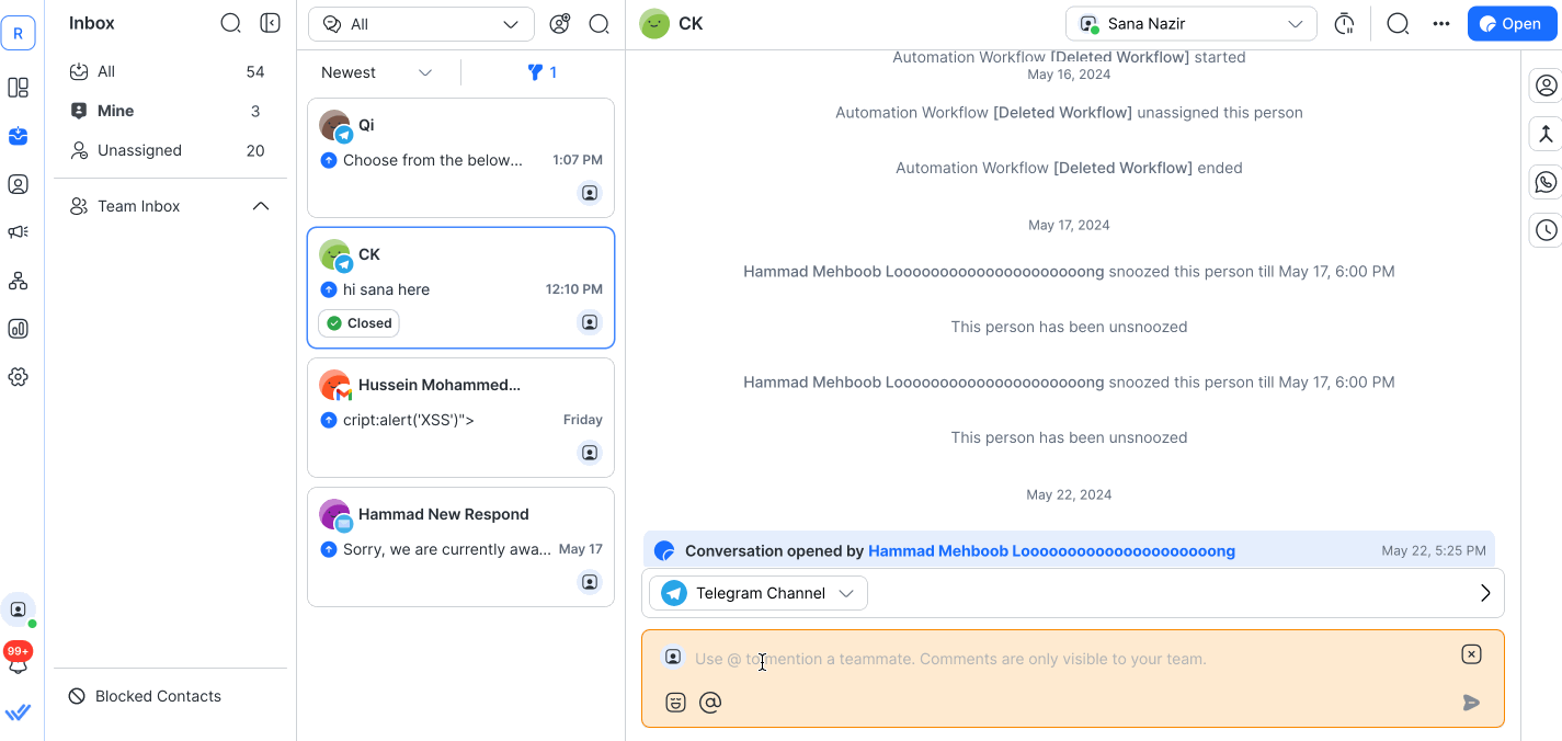For example, should you find the conversation with a customer is still ongoing but the assigned agent is offline, simply comment and tag an available agent to notify and task them to continue the conversation with the customer.