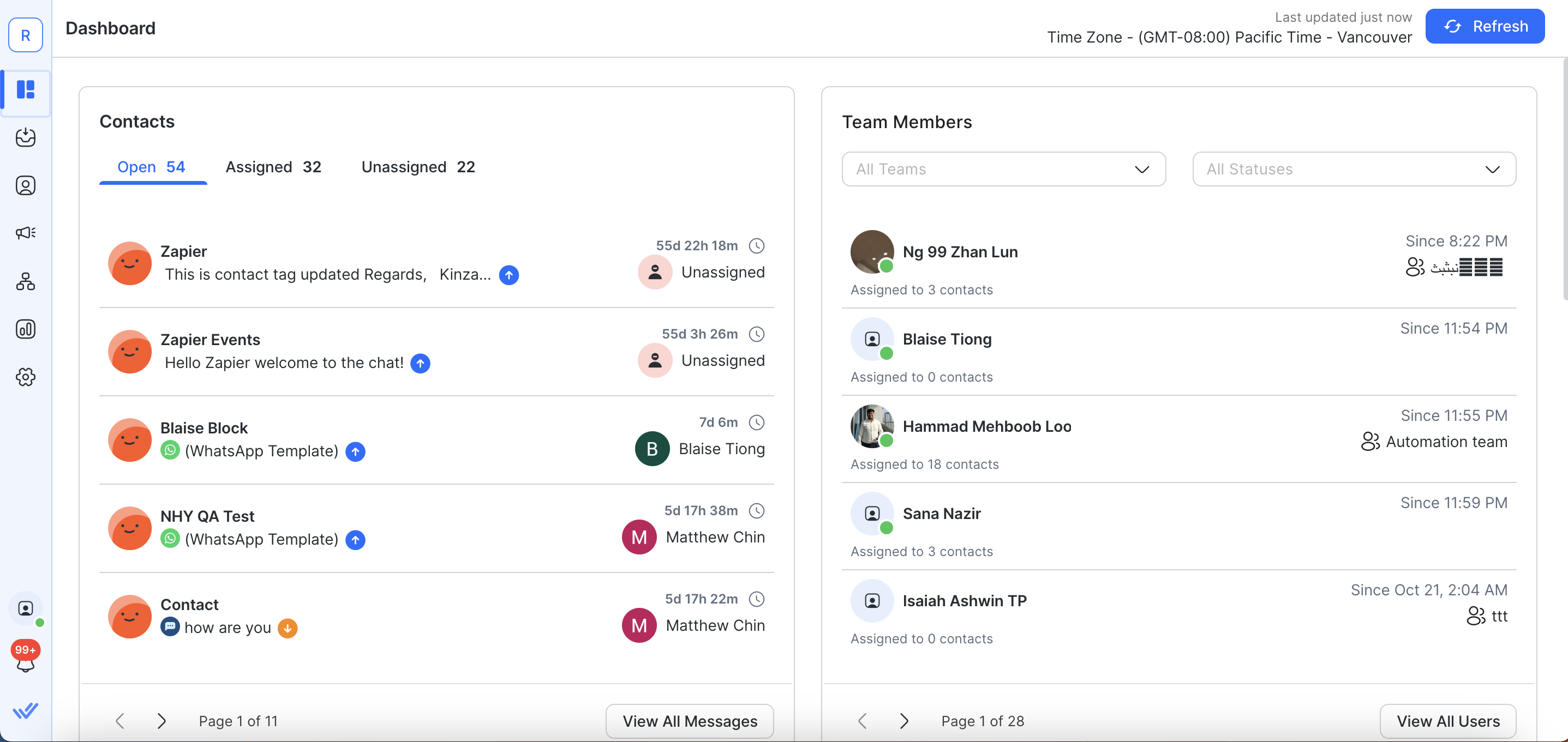 For example, if you see a Contact conversation is open for too long, click on the Contact to open up the conversation in the Inbox Module and investigate the issue.