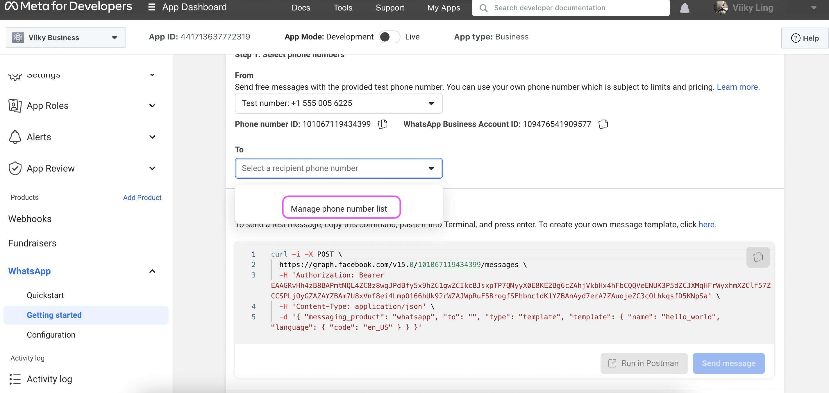 Step 4: Send a test message to the WhatsApp phone number and check if it arrived.